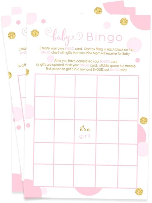 Amazon Com Pink And Gold Baby Shower Bingo Game 25 Pack Blank