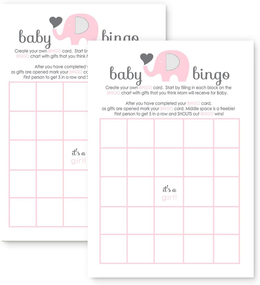 Amazon Com Pink Elephant Baby Shower Bingo Game Blank Cards Set