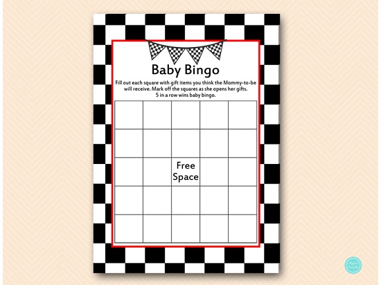 Racing Baby Shower Bingo Card Blank Printabell Express