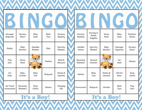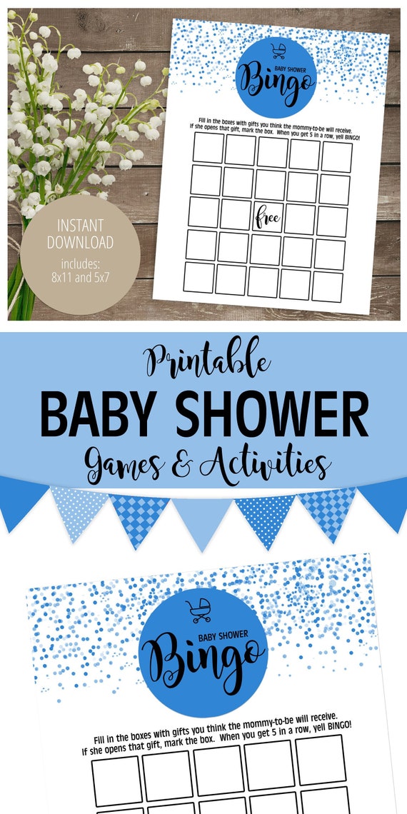 Blue Baby Shower Bingo Card Pdf Printable Baby Shower Game Etsy