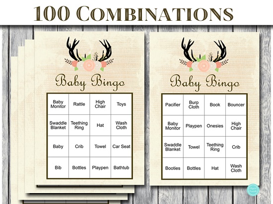 Baby Shower Bingo Game Printable Rustic Style Press Print Party