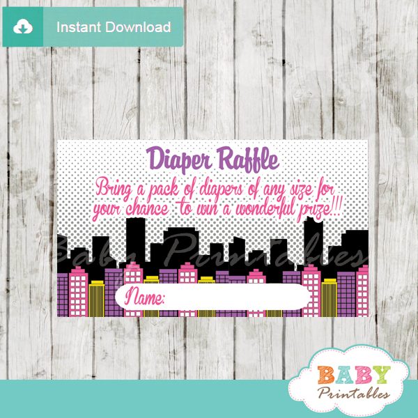 Baby Girl Comic Book Diaper Raffle Tickets D214 Baby Printables