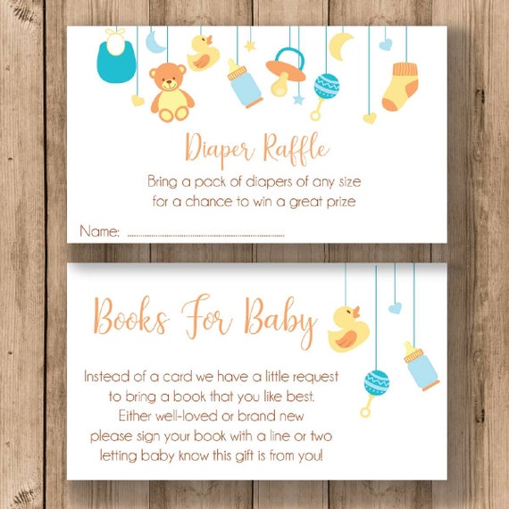 Baby Shower Invitation Inserts Book Request Cards Diaper Raffle