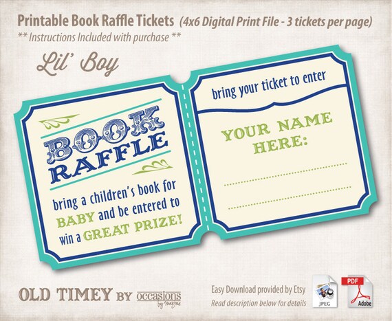 Printable Book Raffle Tickets Baby Shower Games Baby Boy Etsy