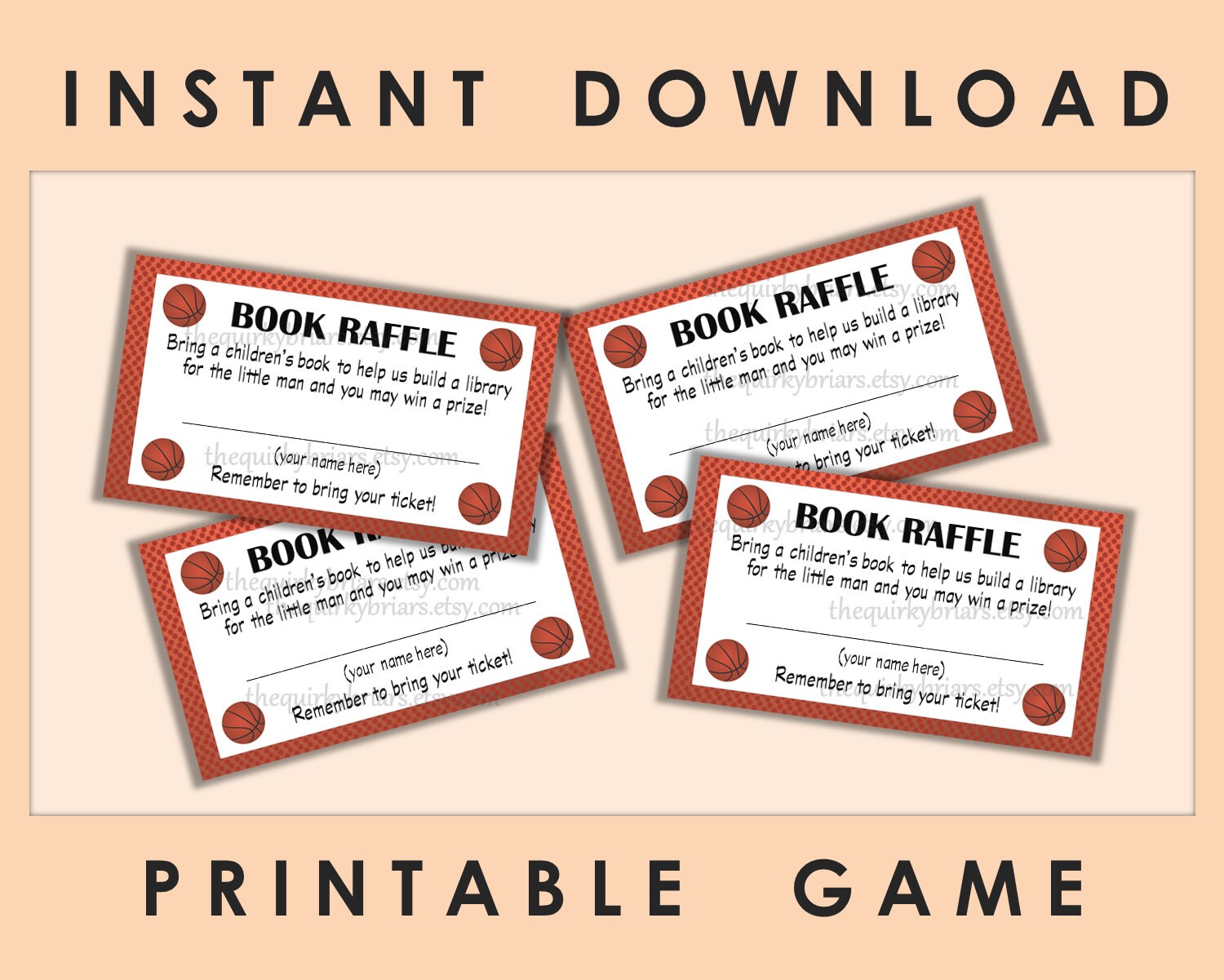Book Raffle Card Printable Digital File Instant Download