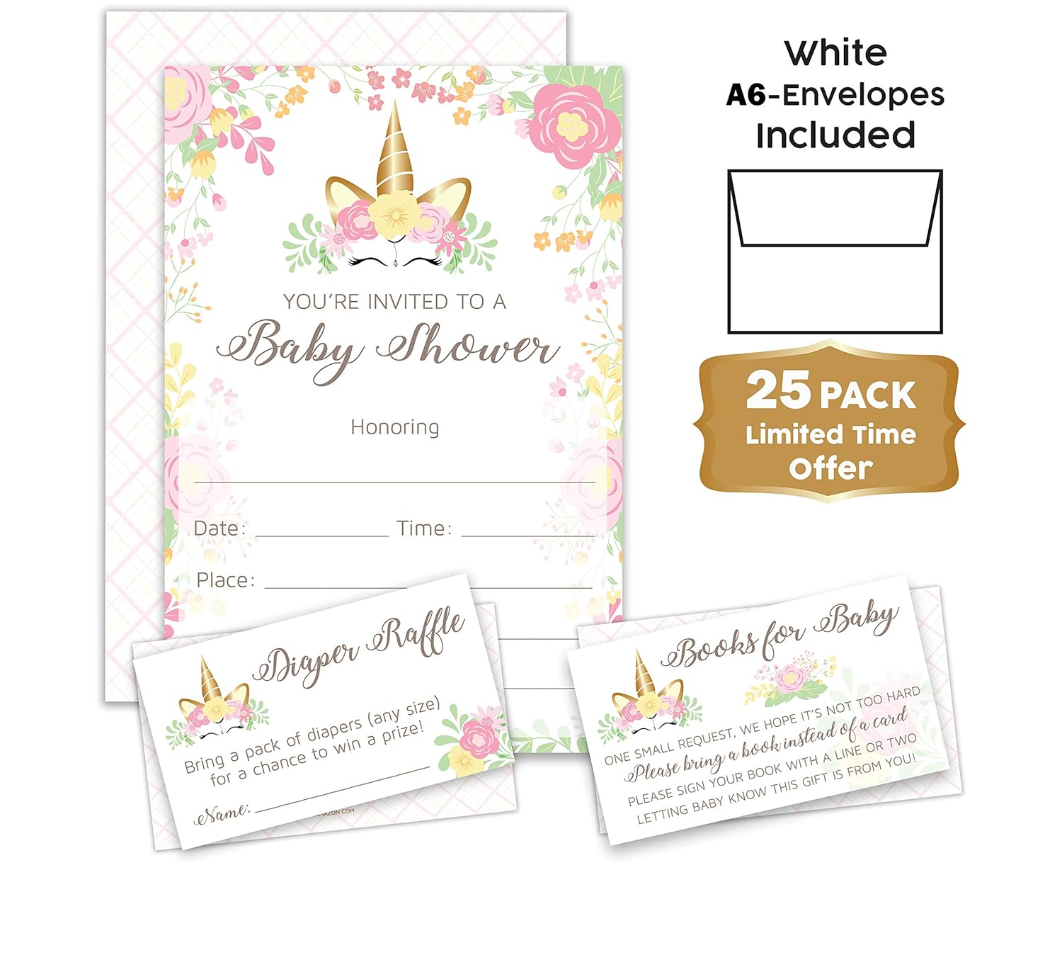 Set Of 25 Floral Baby Shower Invitations Diaper Raffle Tickets
