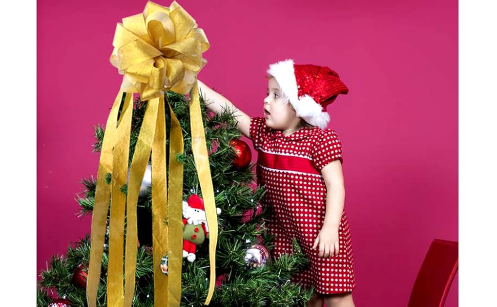Amazon Com Partytalk Gold Glitter Christmas Tree Topper Bow Wired