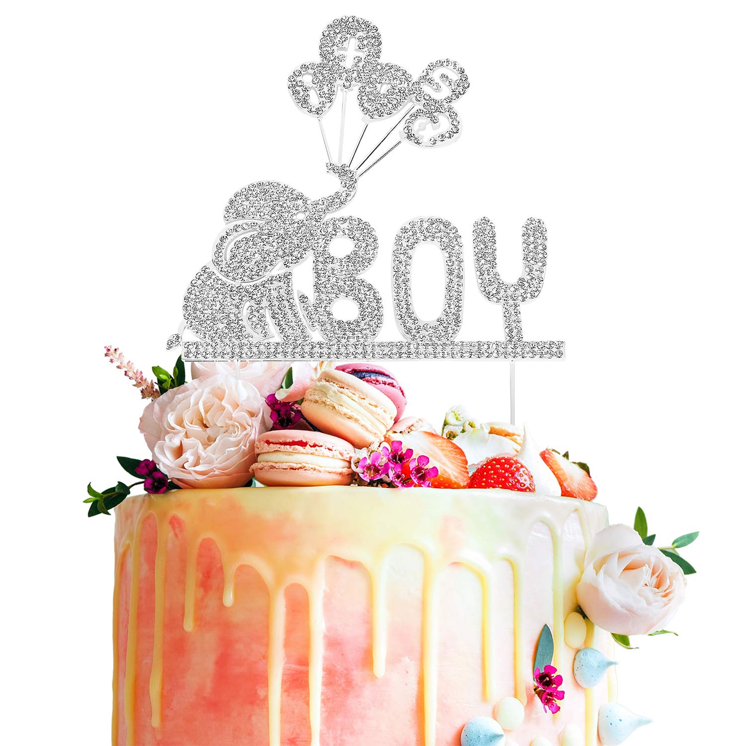 It S A Boy Elephant Baby Rhinestone Silver Metal Cake Topper