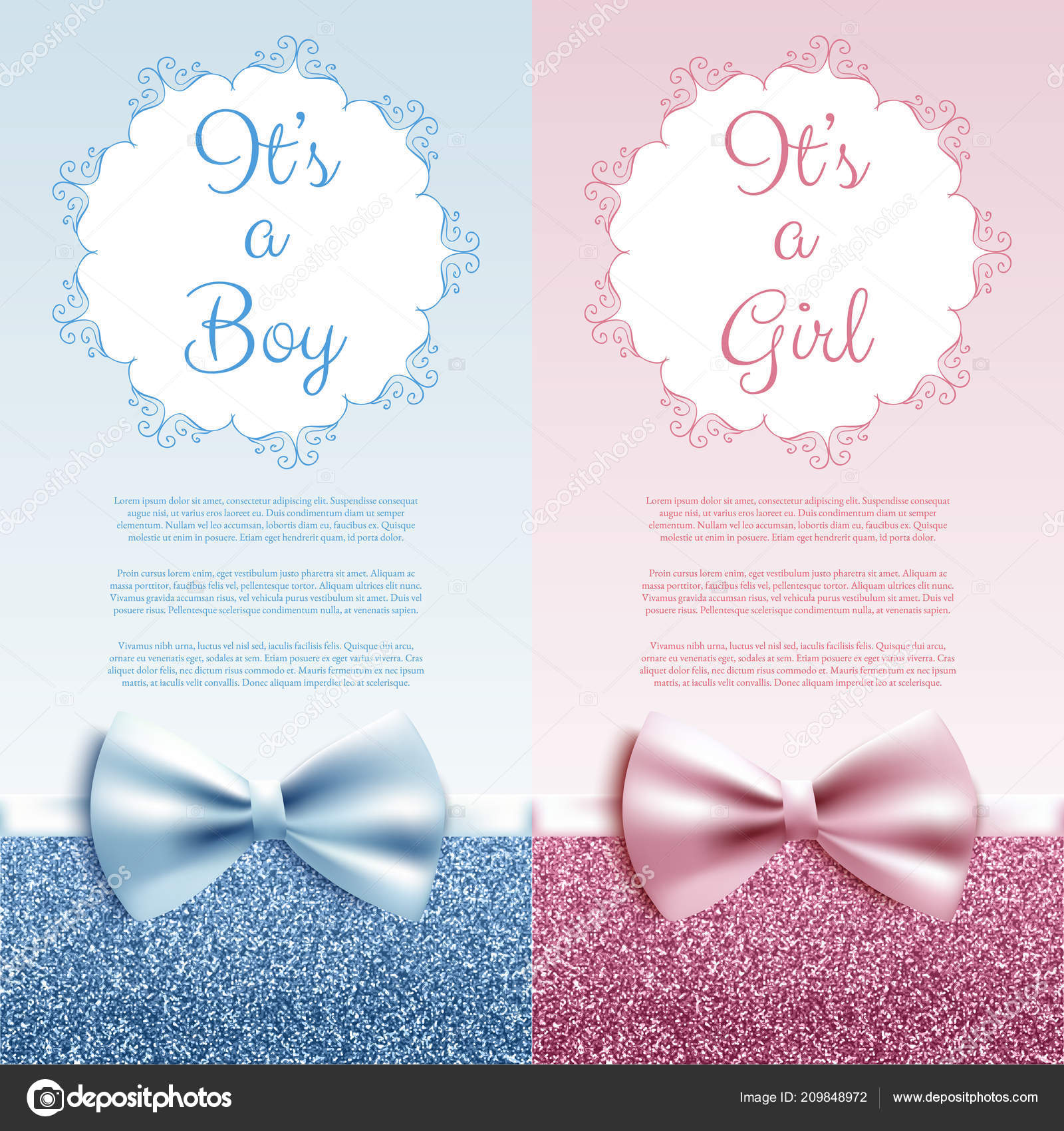 Boy Girl Baby Shower Cute Card Invitation Blue Pink Bow Stock