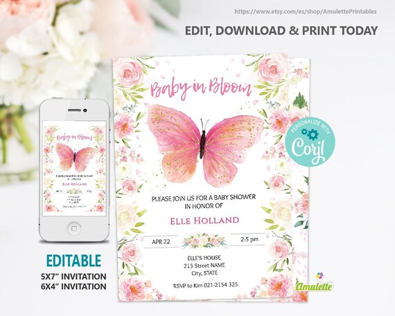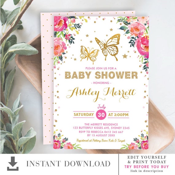 Butterfly Baby Shower Invitation Bundle Editable Baby Girl Etsy