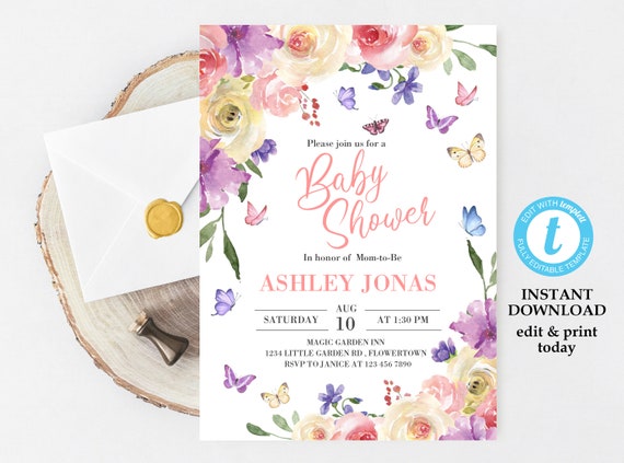 Garden Party Baby Shower Invitation Template Butterfly Baby Etsy