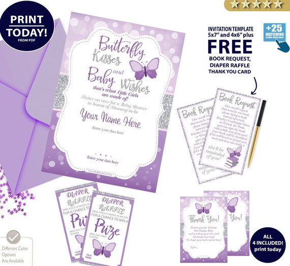 Butterfly Kisses Invitation For Baby Shower Editable With Free Etsy