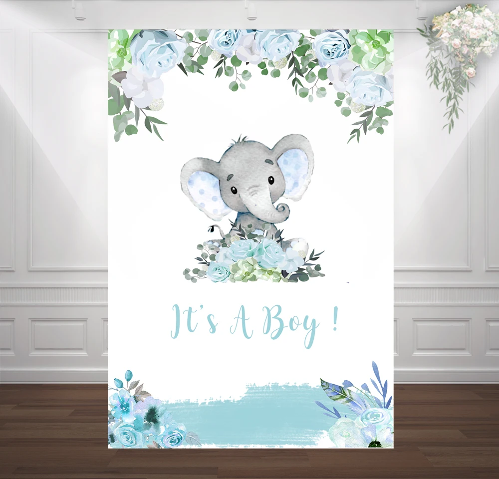 Huayi Elephant Boy Baby Shower Backdrop Blue Floral Kids 1st