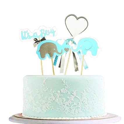 Elegant Cakery Elephant Baby Shower Cake Topper Boy