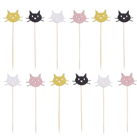 Upkoch 48pcs 2019 Kitty Cat Cupcake Toppers Cake Picks Shiny Black