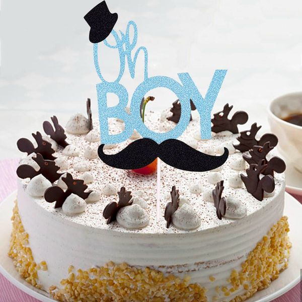 2019 New Glitter Blue Mustache Little Man Cake Topper Oh Boy