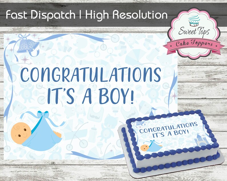 Baby Shower Boy Rectangle Edible Cake Topper Decoration Etsy