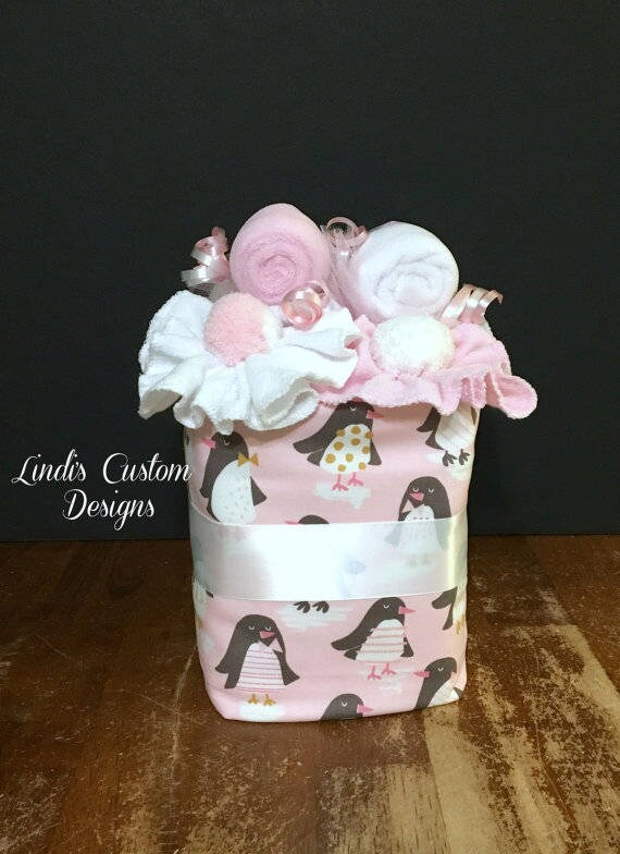 Girl Diaper Cake 1 Tier Penguin Diaper Cake Girl Baby Shower Etsy