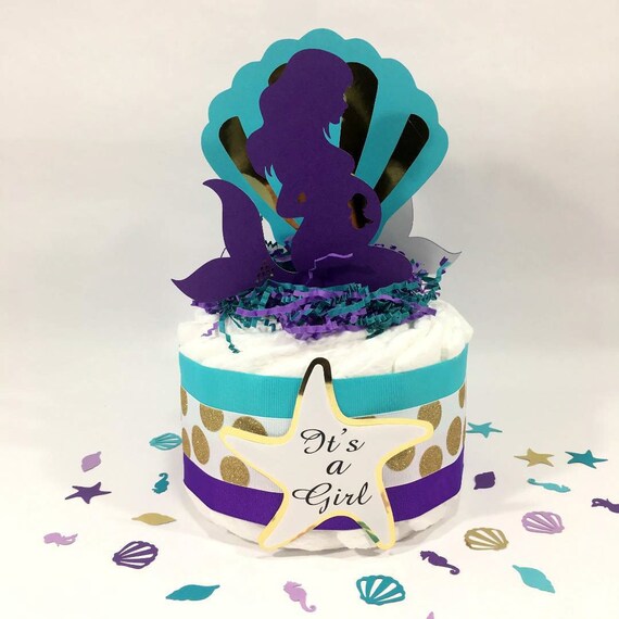 Pregnant Mermaid 1 Tier Baby Shower Diaper Cake Centerpiece Etsy